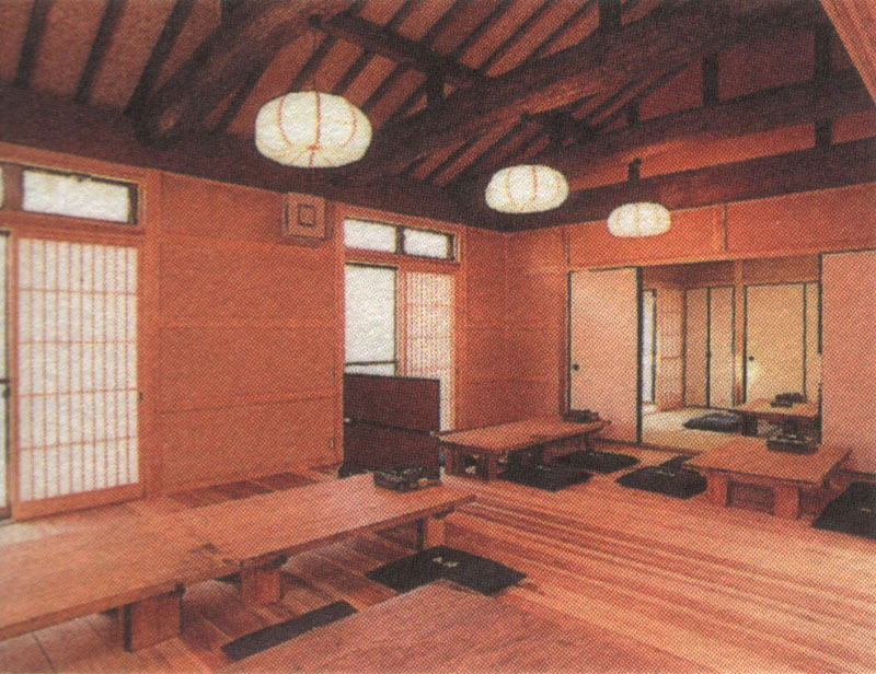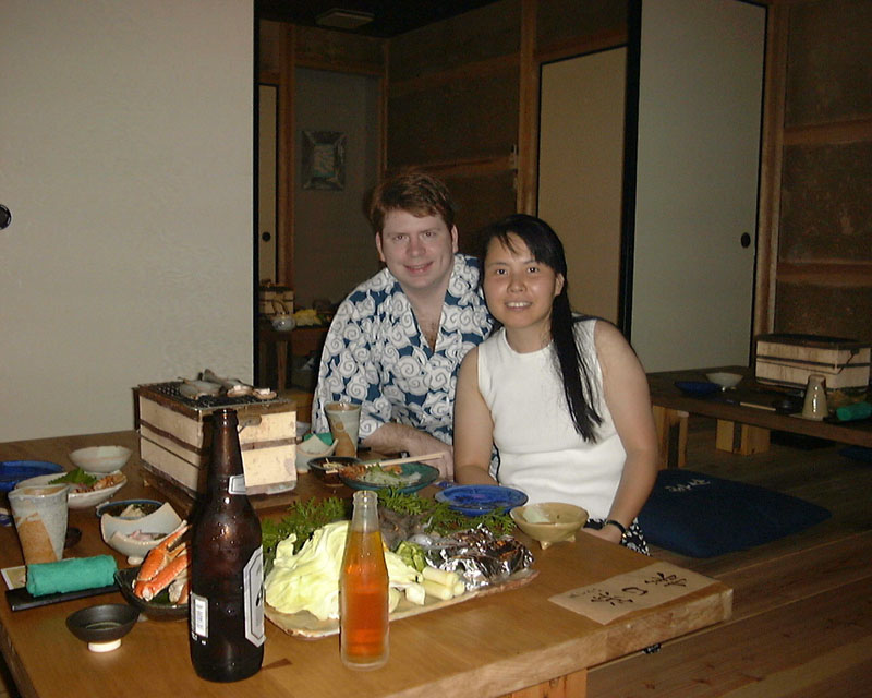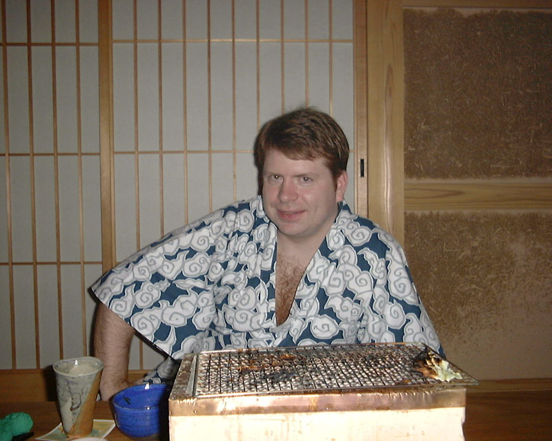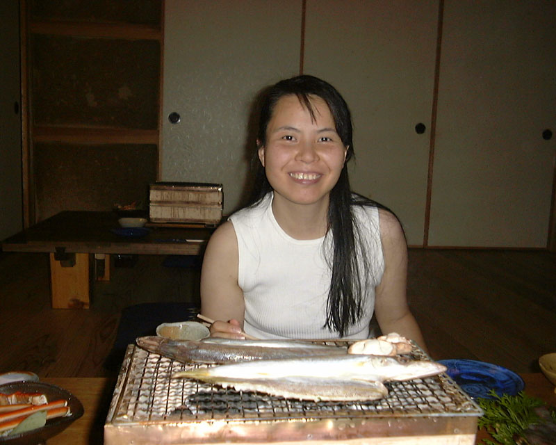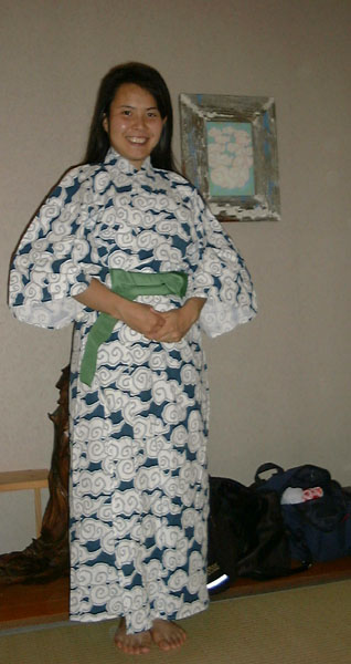 Yasuyo in her yukata - notice the cloud motif in her robe and the painting in the background